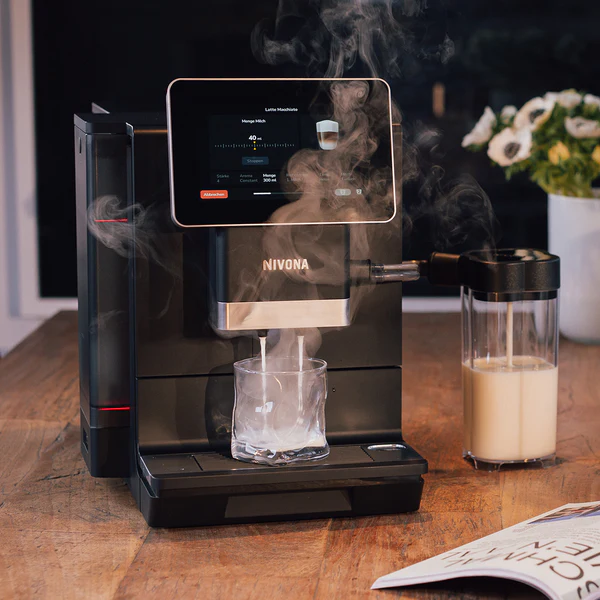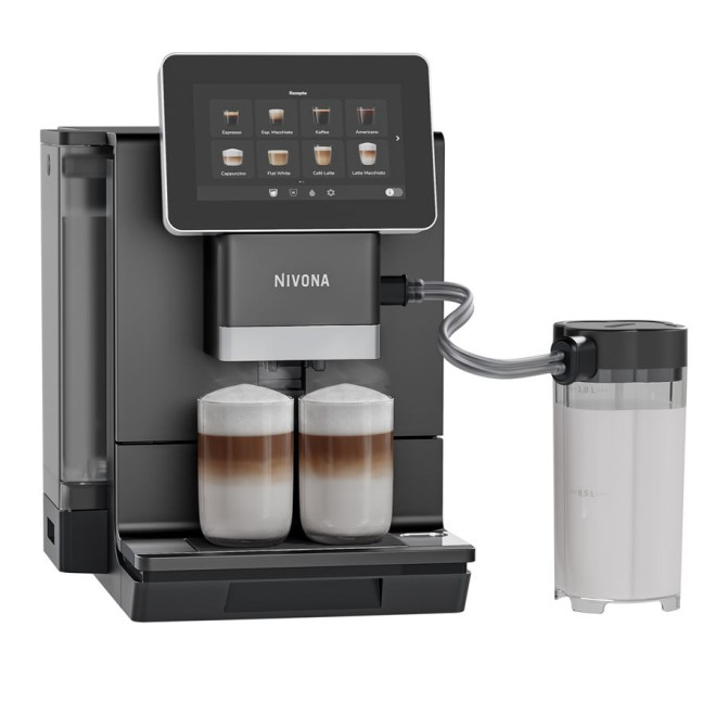 Dizajn a komfort: Kávovar v matnej čiernej farbe dopĺňa osemfarebné podsvietenie nádržky na vodu a osvetlenie šálok, čo z prípravy kávy robí aj vizuálny zážitok. Extrémne tichý mlynček a Bluetooth ovládanie cez aplikáciu Nivona App sú samozrejmosťou.