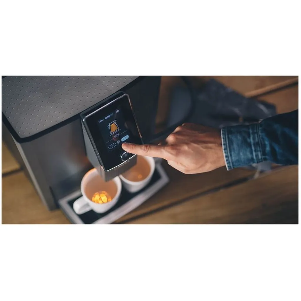 7” MultiTouch TFT displej: Mimoriadne veľká dotyková plocha s novým grafickým rozhraním. Výber kávy a prispôsobenie receptov nebolo nikdy vizuálne atraktívnejšie a intuitívnejšie.